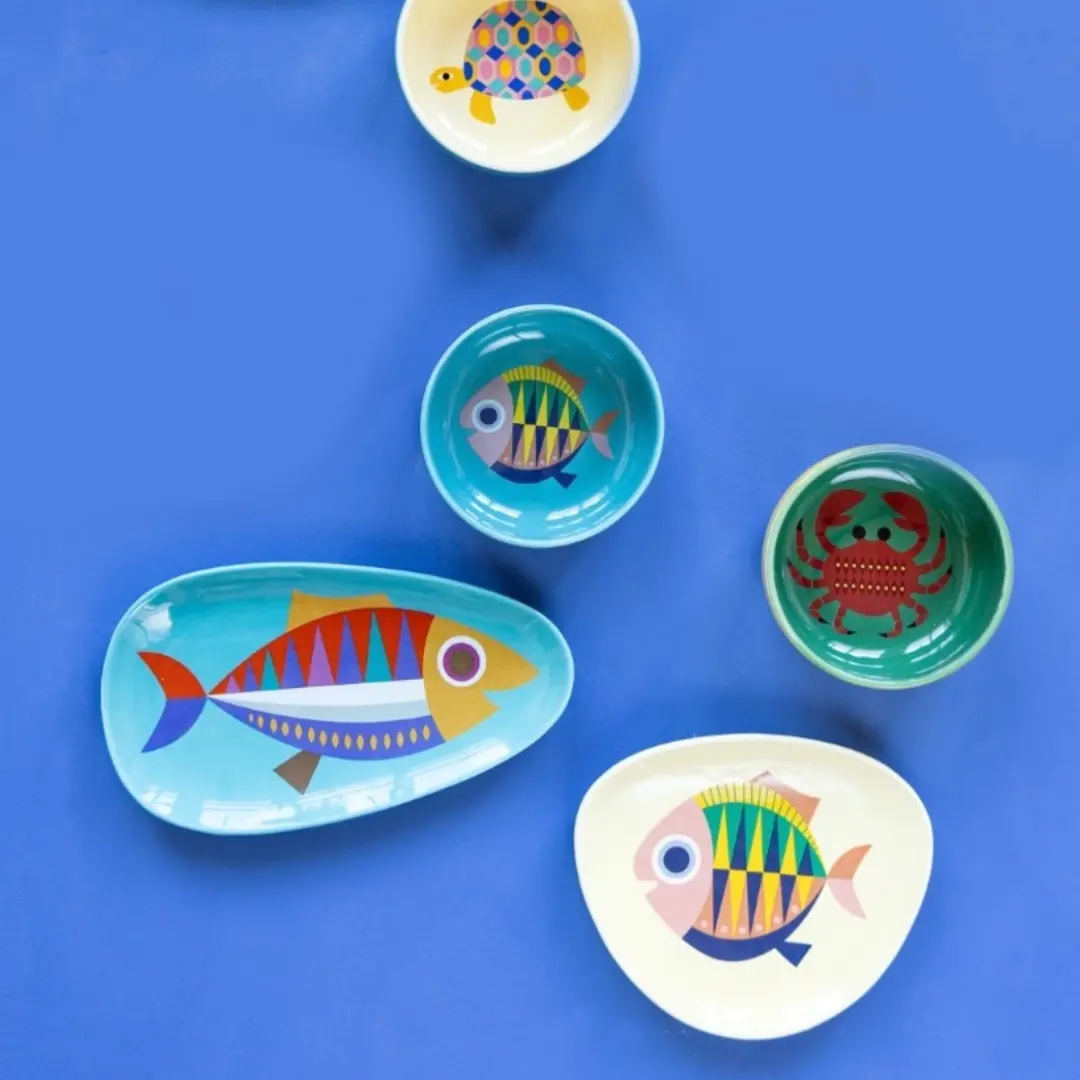 Open planken bieden een uitstekende mogelijkheid voor kleurrijke accessoires voor keukeninrichting. Zet je favoriete servies zoals Kitsch Kitchen’s Sea Life Plates en de speelse nieuwe set van 4 kopjes in de spotlight. Door deze kleurrijke items prominent tentoon te stellen, worden ze aantrekkelijke blikvangers op uw muren of keukenplanken.